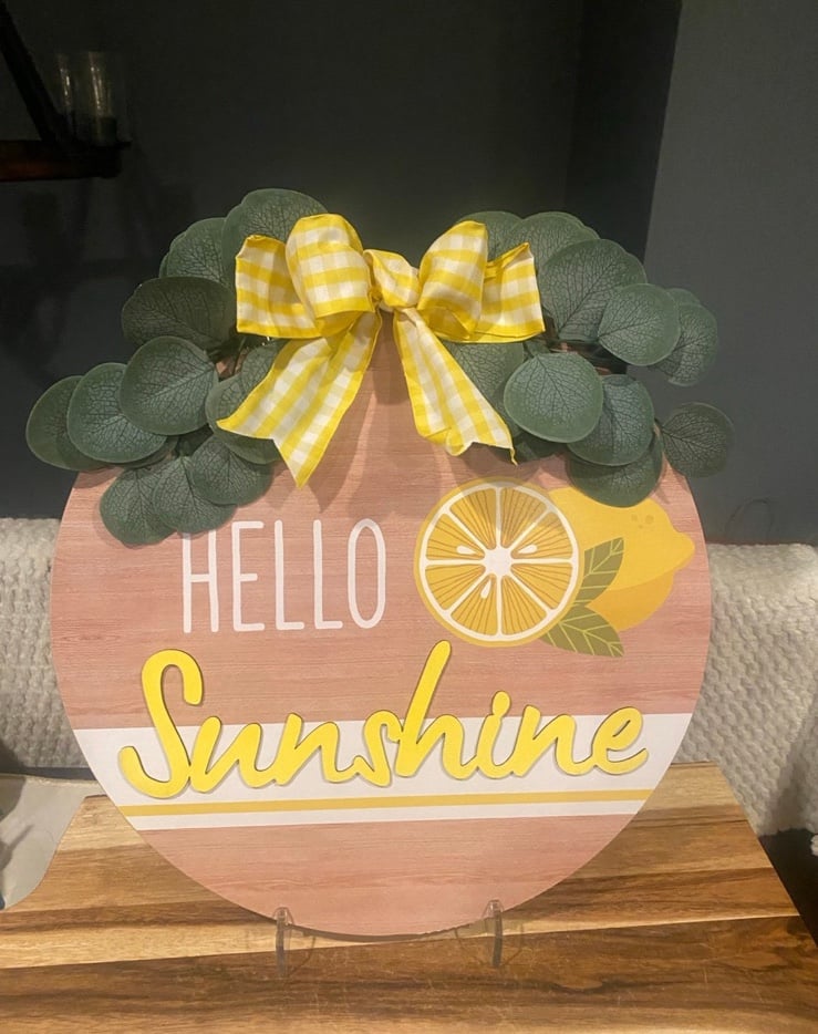 Lemon Circle SIgn "HELLO SUNSHINE" 15" DIAMETER