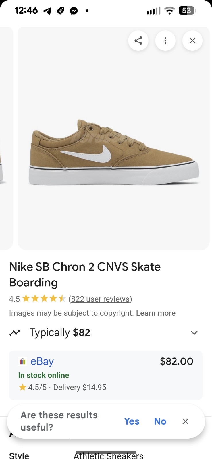 NEW Men's size 10 Nike sneakers. The SB Chron 2 Canvas is the newest member of the Chron family. The revamped design includes a reshaped collar and heel for an improved fit—all while maintaining the comfort and performance you expect from Nike SB. Lace up closure. Extended toe bumper adds durability. Canvas upper. Rubber outsole. Imported. Tan with black soles