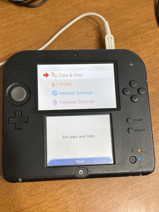 The black and blue edition. In excellent condition. Works like new and was only used a couple of times. Comes with memory card, the original Nintendo DS car charger, and 2 regular chargers. One is a usb cable and the other is for wall outlets. Volume works. All buttons work.