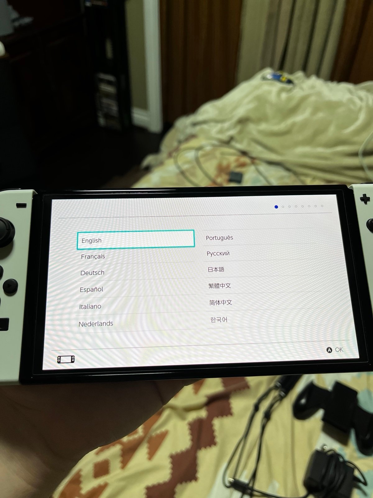 A barely used White Switch OLED that comes with the original dock, Oled switch, joycons, and cables. Power A joycon grip included as well as original straps for the joycons. Screen comes with applied screen protector as well! Ask any questions if necessary!