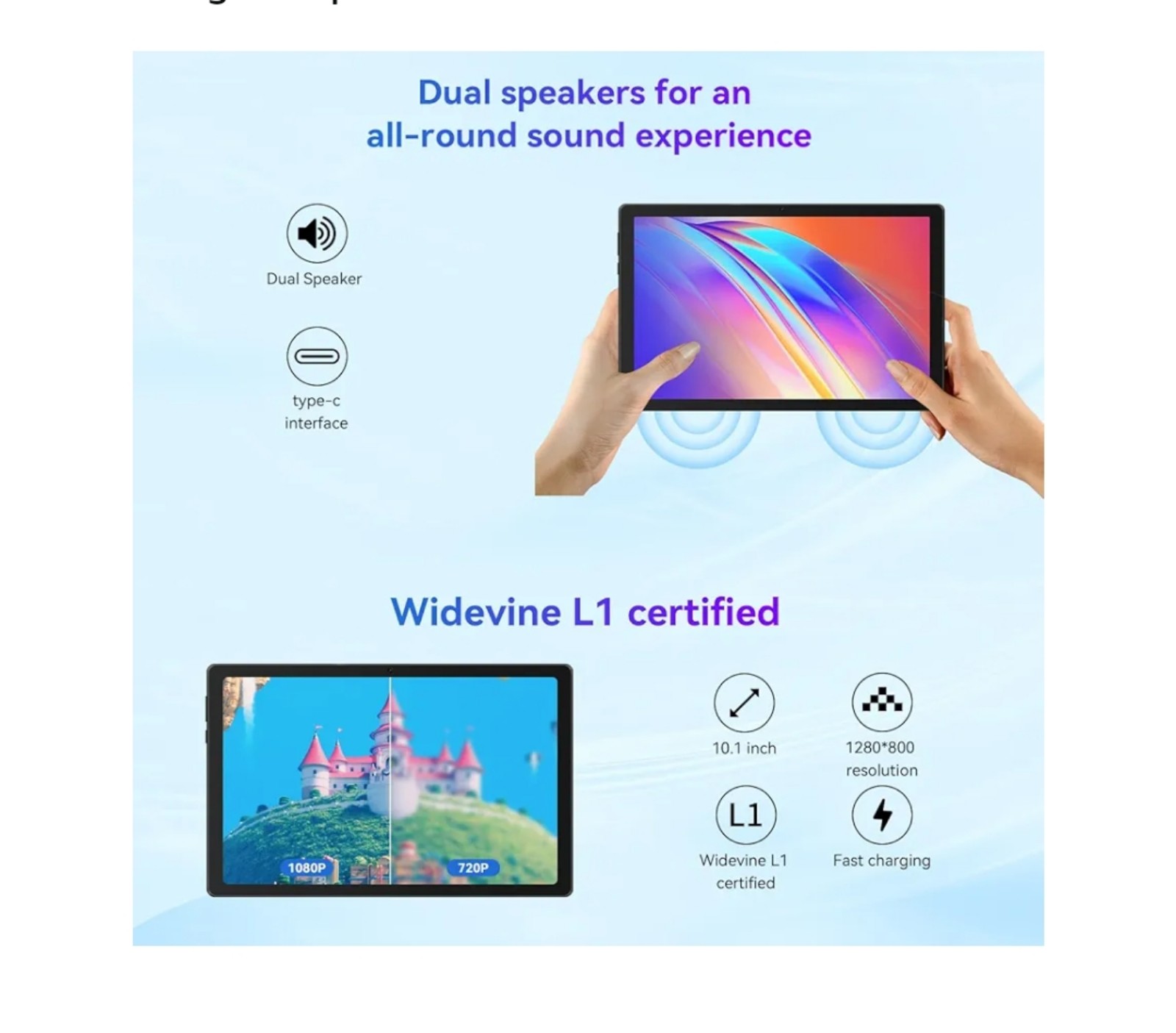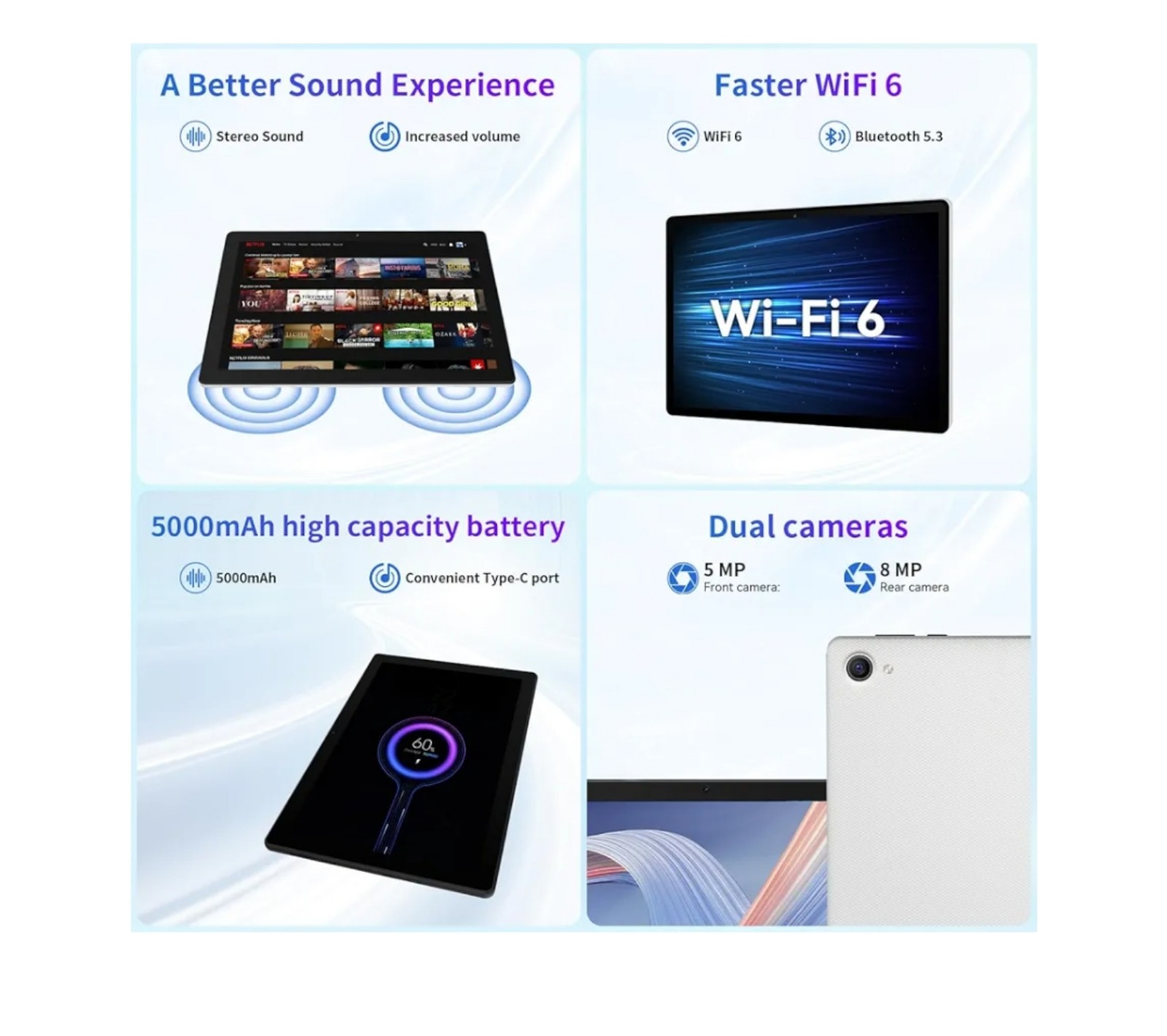 Tablet Android 14 Tablet 10.1 inch, Octa-Core 8GB RAM 64GB ROM(TF 1TB Expansion) WiFi6+Bluetooth 5.3 Dual Camera+Dual Speaker Type-C Charging+Manual