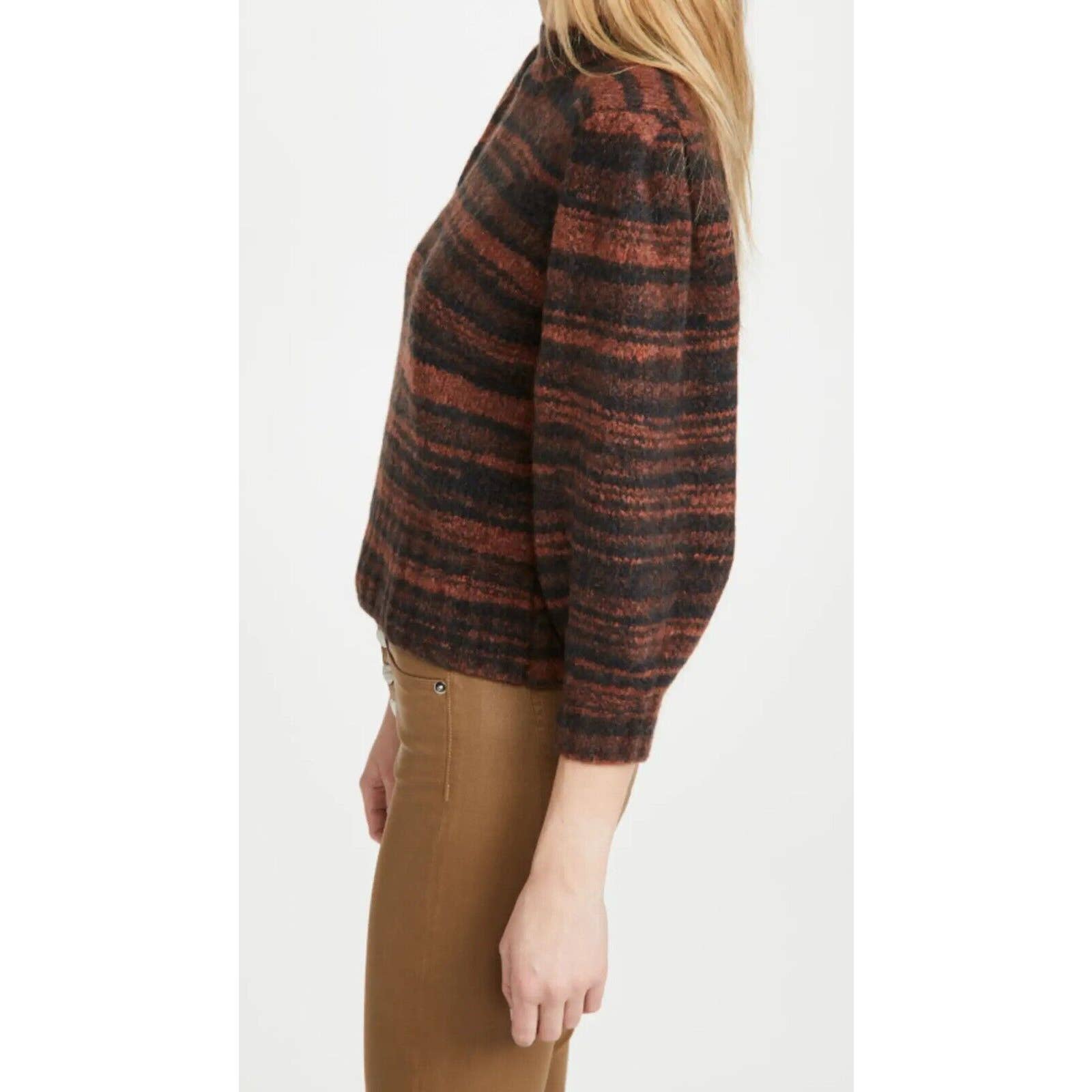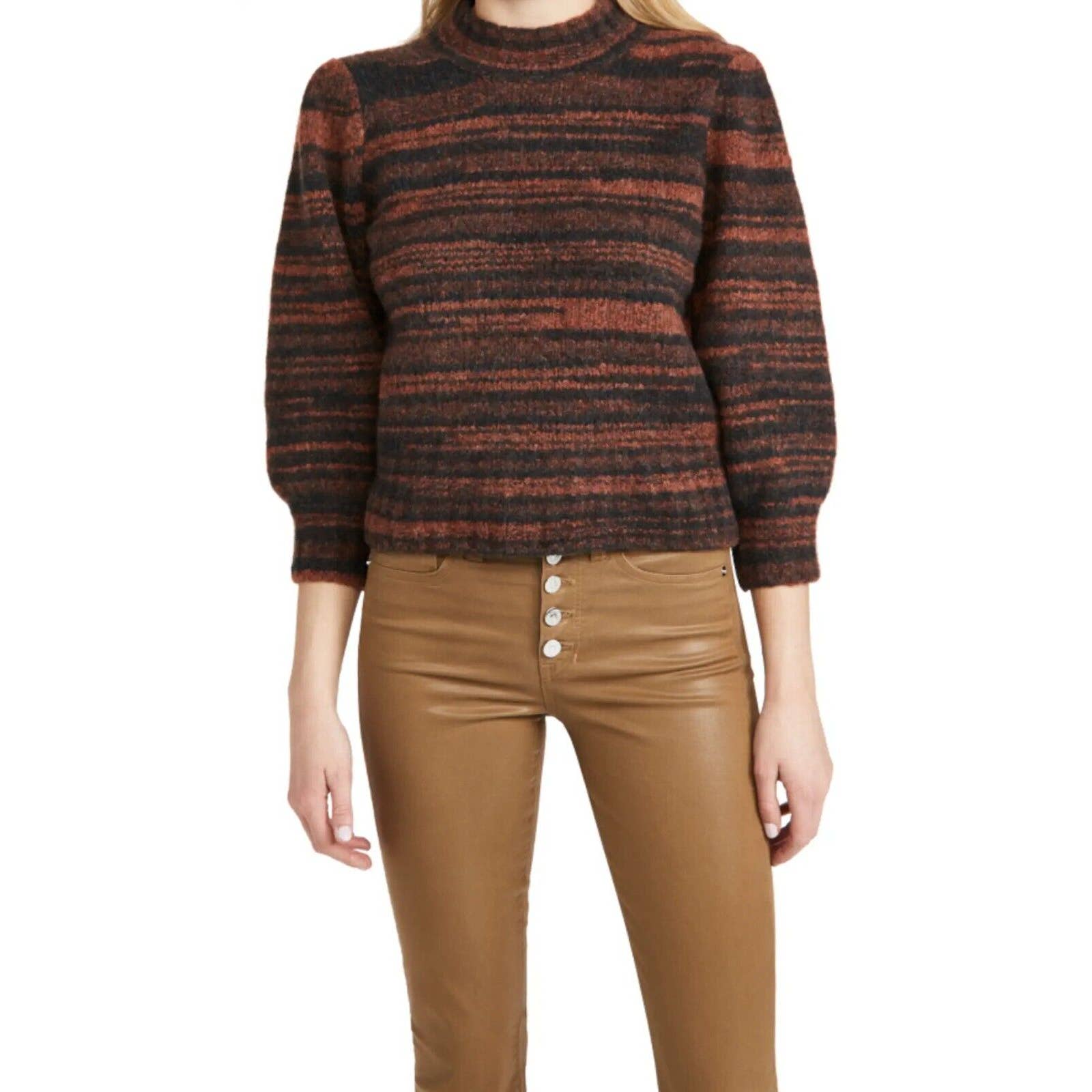 Elevate your winter wardrobe with this stylish Veronica Beard Lumina Crew Neck Sweater! Made of high-quality merino wool, this sweater features a timeless striped pattern and blouson sleeves for a touch of flare. The tight-knit material and 3/4 sleeves make it perfect for any occasion, whether it's a casual night out or a party.